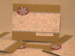 Onto the happy part, I was somewhat productive over the weekend. I told my mom I'd make her some cards with some new sets. She likes to buy the sets, but I'm ususally the one who uses them. Sorry mom, but it's true... So here they are(sorry the pics are a tad blurry, i'm working on taking better pics):